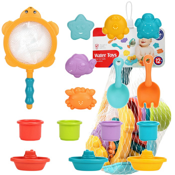 ZESTAW DO WANNY DO KĄPIELI DO PIASKU W SIATCE SITKO FOREMKI ZABAWKI DO KĄPIELI ŁÓDKI KUBECZKI