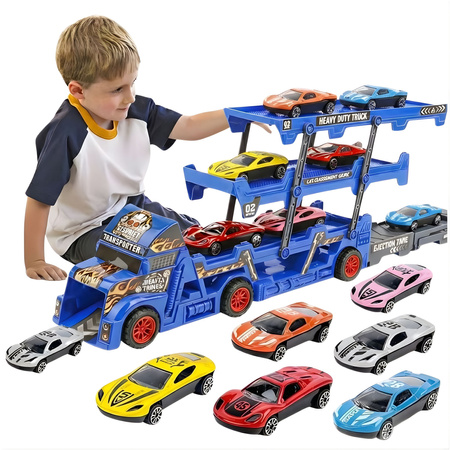 The toy is made of safe, durable plastic that will survive even the most intense races. The transporter features folding levels, allowing for easy loading and unloading of the included colorful die-cast cars. It's not just fun, it's learning too! The child practices fine motor skills, hand-eye coordination, and learns tidiness by parking their toy cars on the carrier after playtime is over. 🧠