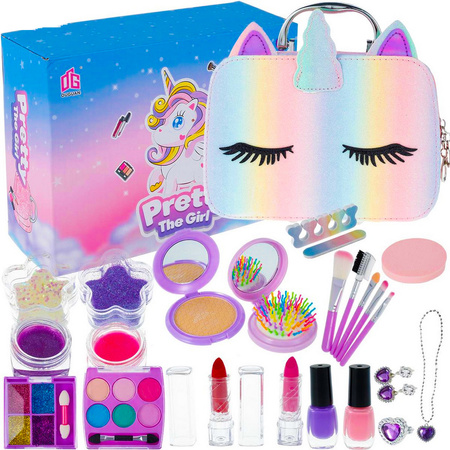 🛡️ Bezpieczeństwo i Jakość Gwarantowane: Produkty zostały stworzone z myślą o najmłodszych. Kosmetyki są nietoksyczne, przebadane i łatwo zmywalne wodą, nie powodując podrażnień. Kuferek wykonano z trwałych, bezpiecznych materiałów, co zapewnia rodzicom spokój, a dzieciom godziny beztroskiej zabawy.